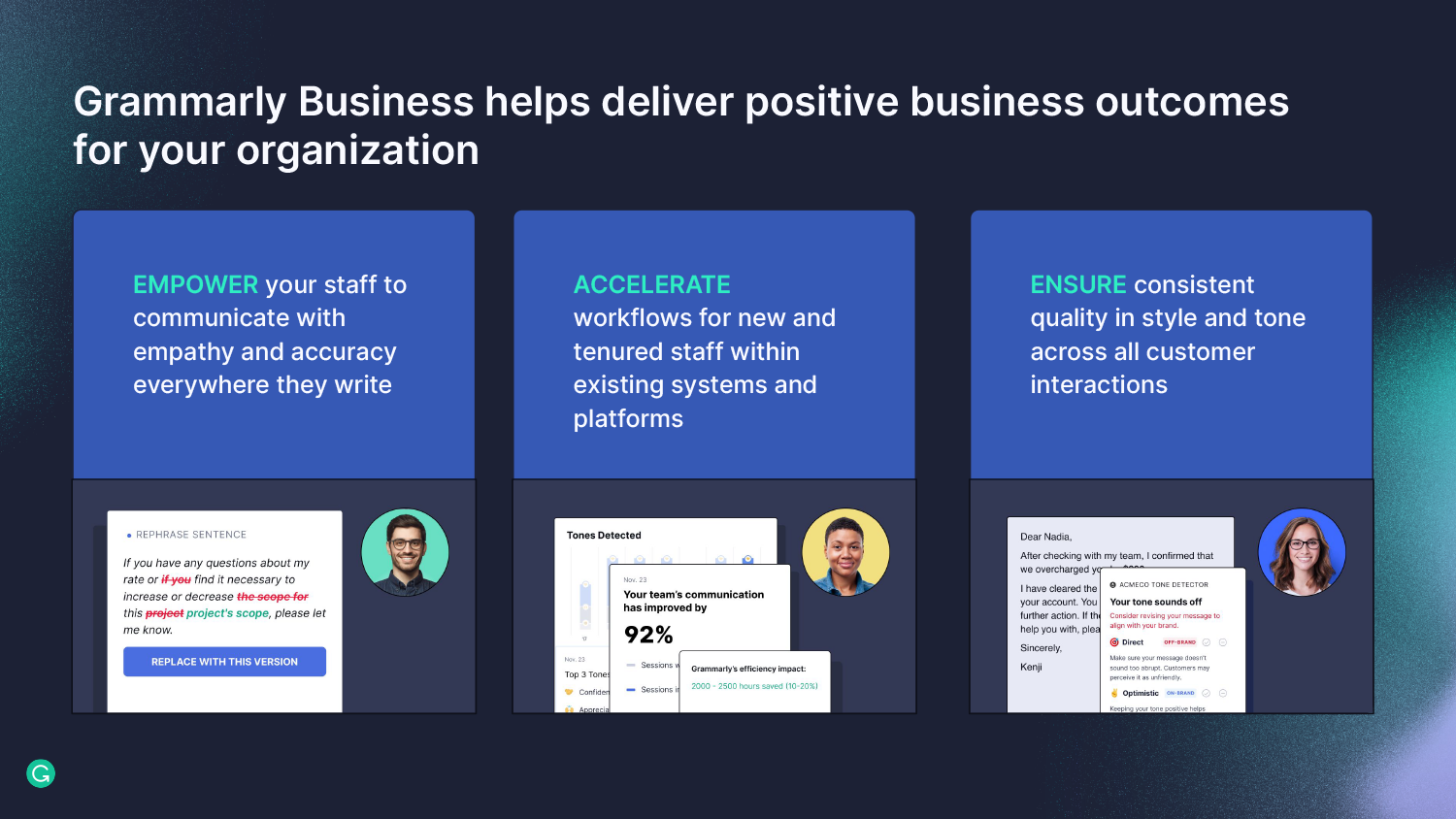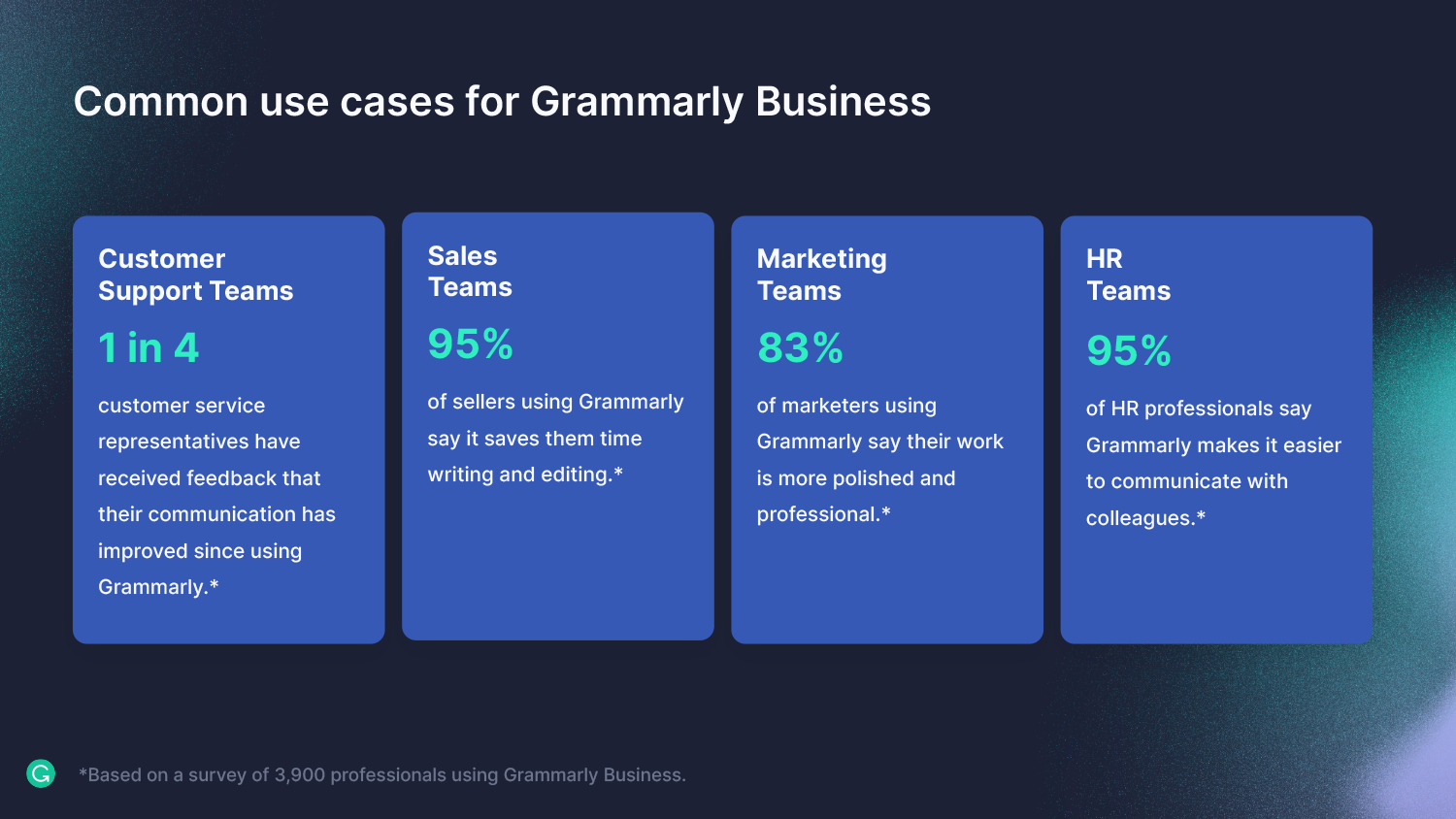 Grammarly is an AI-powered writing assistant that offers you specific suggestions to help you improve your writing. These are projects for their sales enablement team.